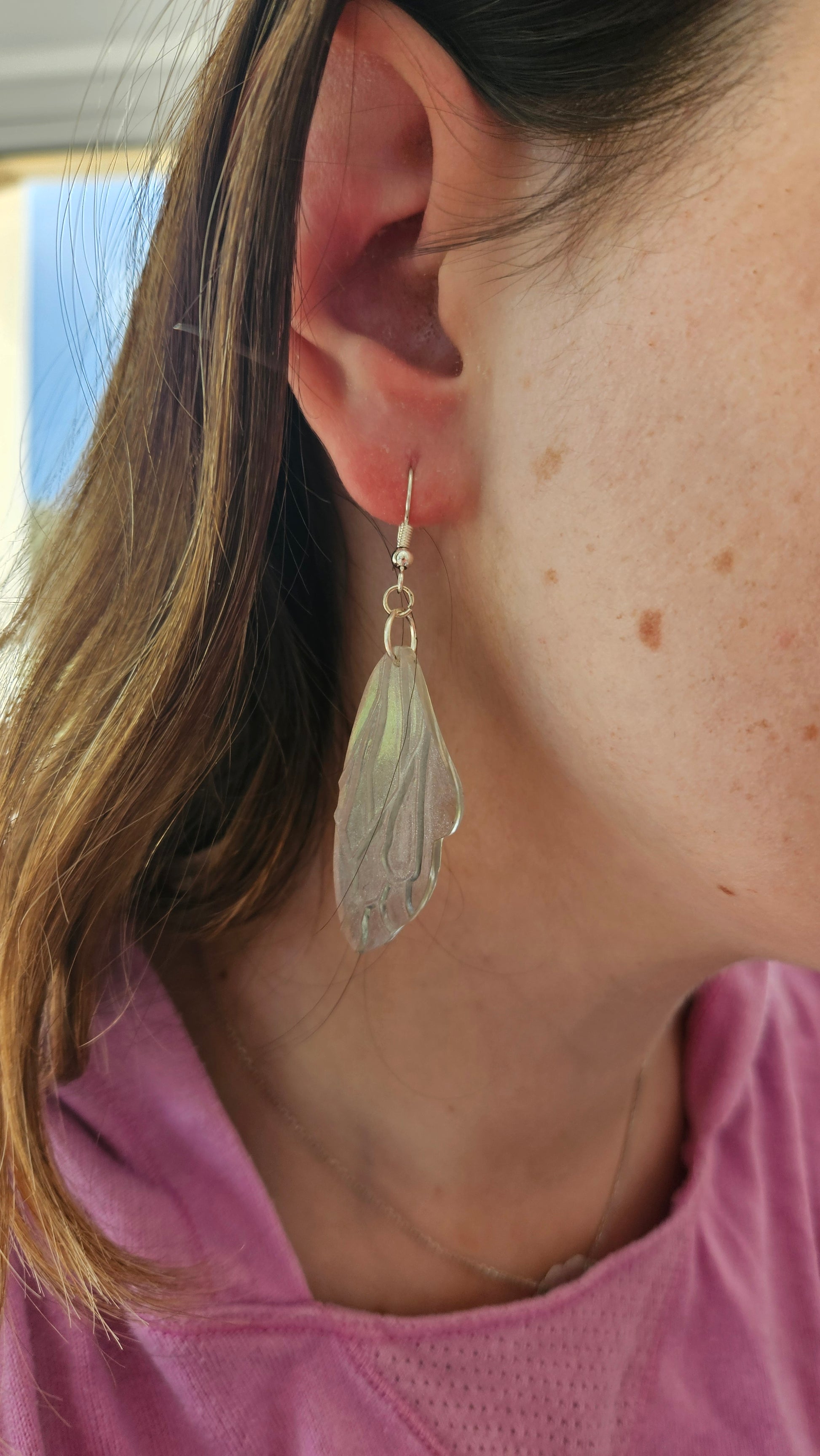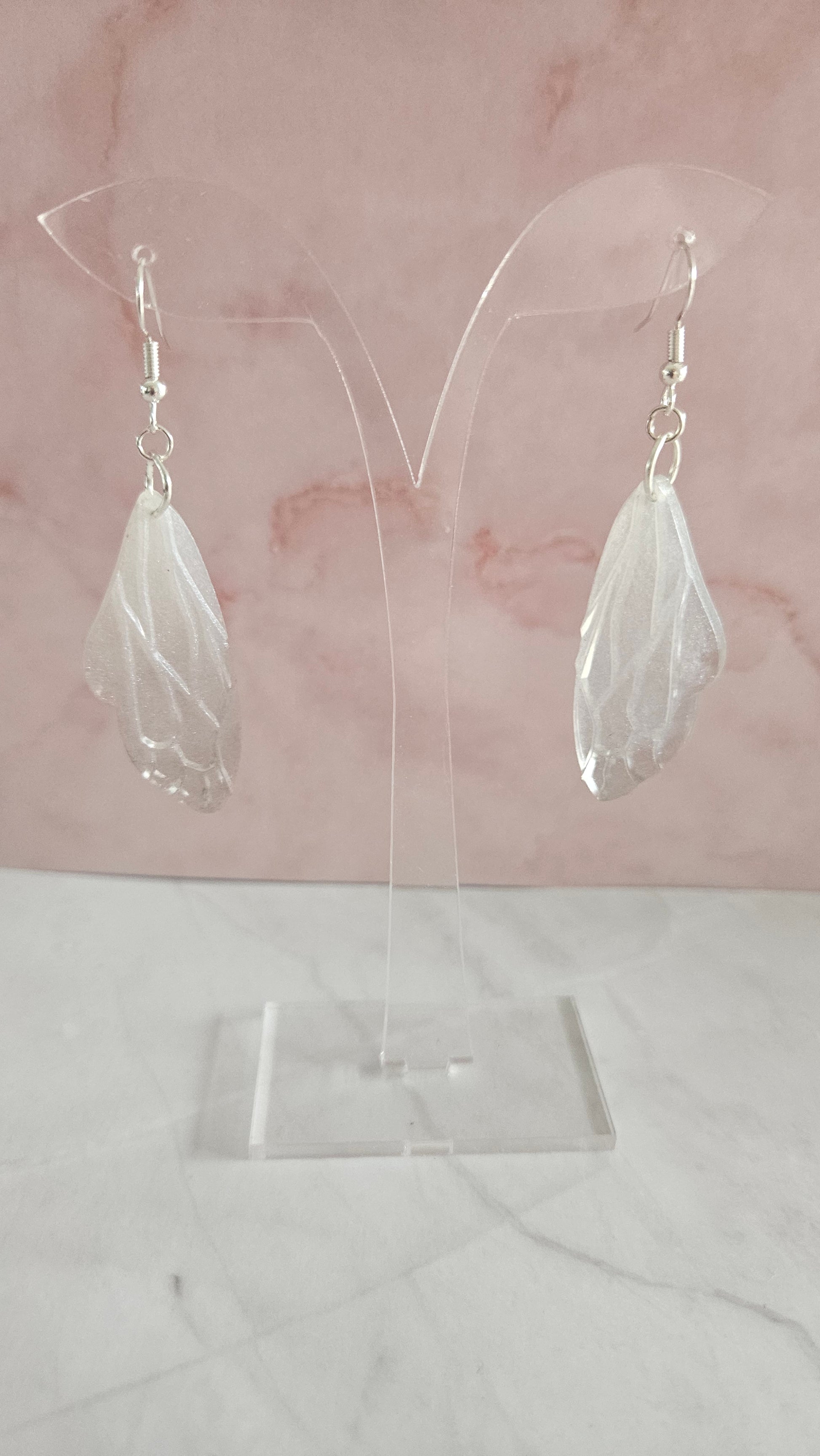 Boucle d'oreille en forme d'ail de fée, de couleur noir et blanc.