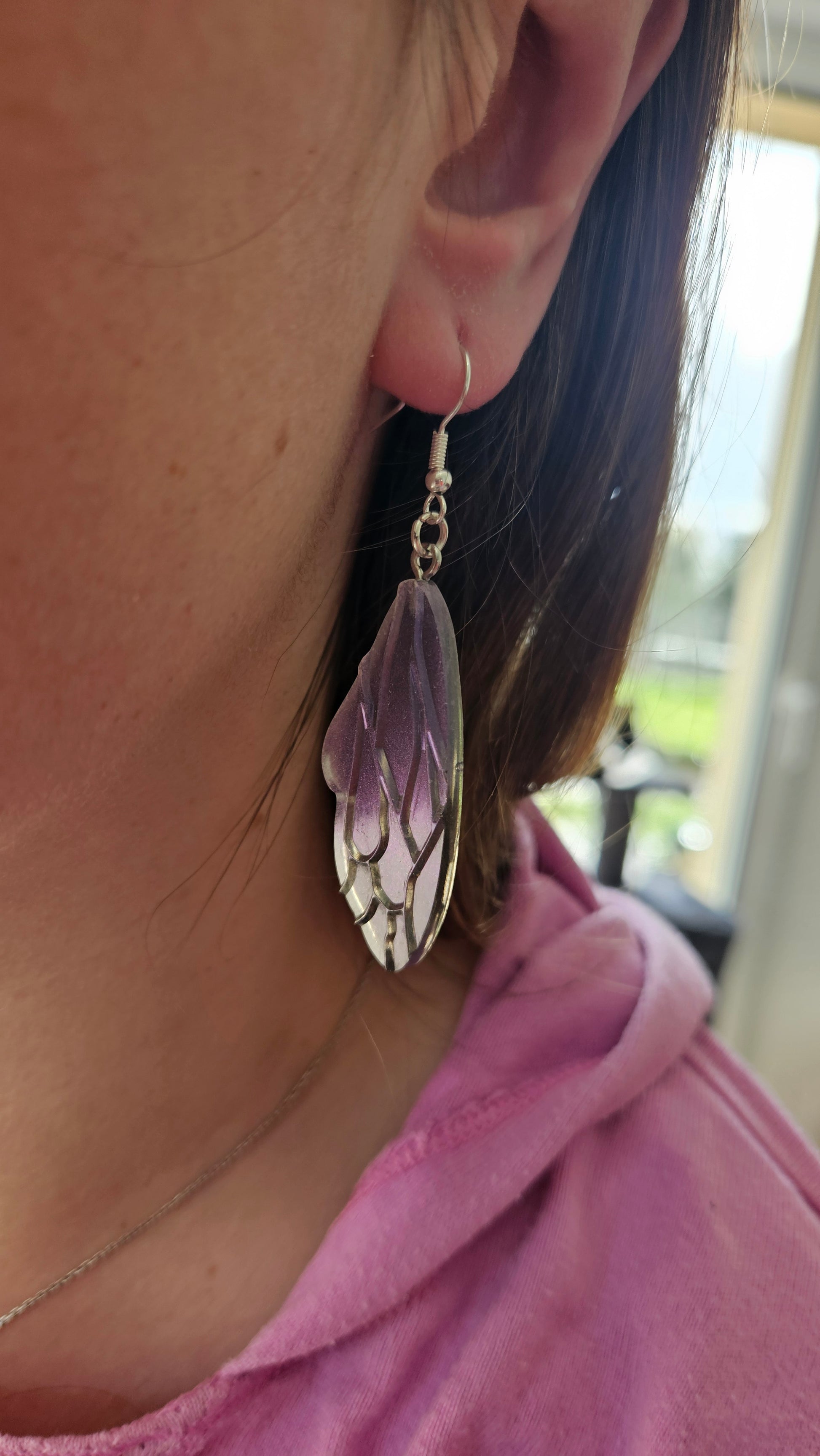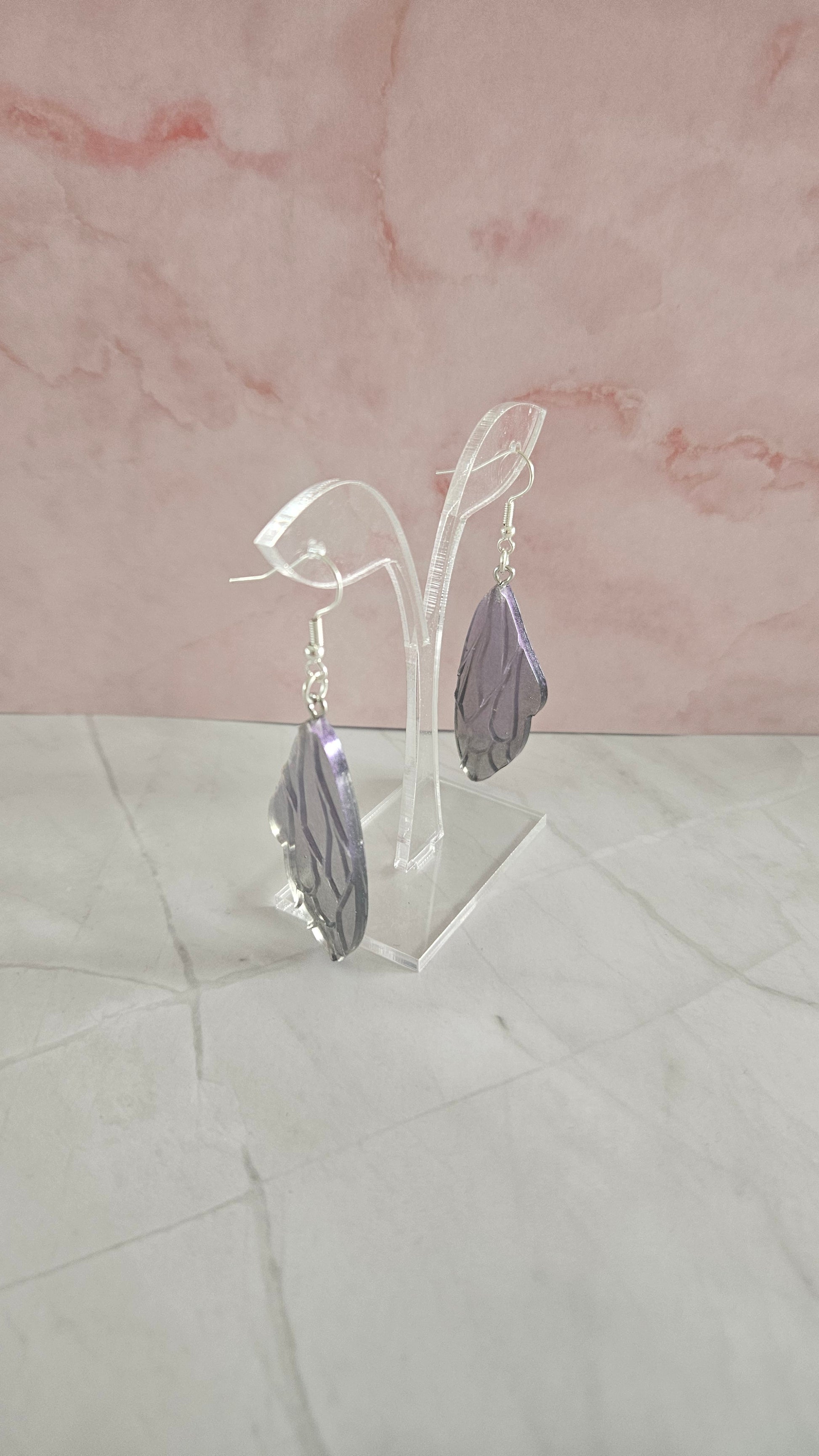 Boucle d'oreille en forme d'ail de couleur noire et violette.