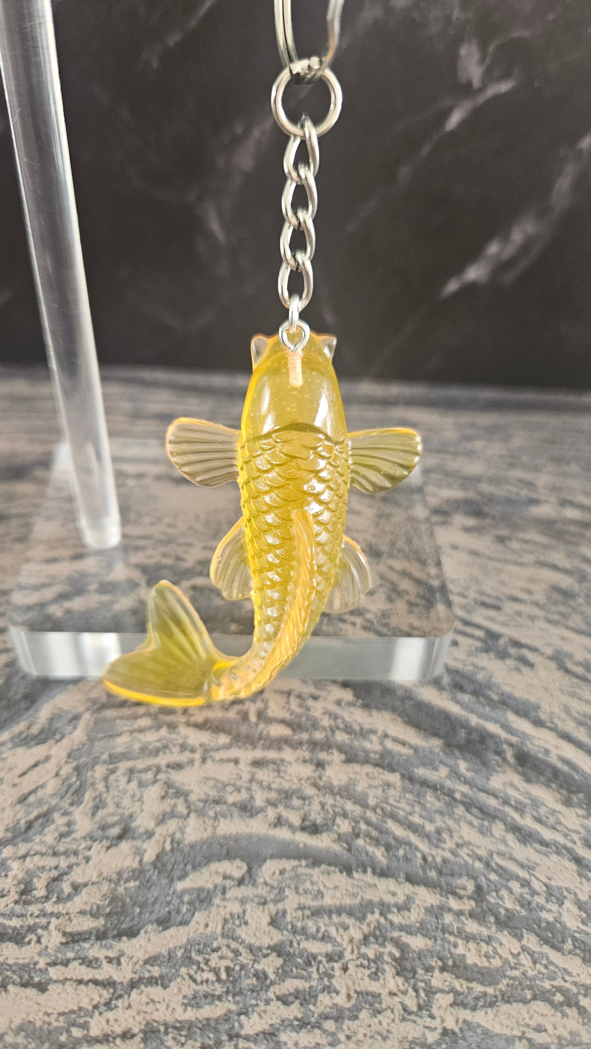 Porte clé carpe jaune et orange.
