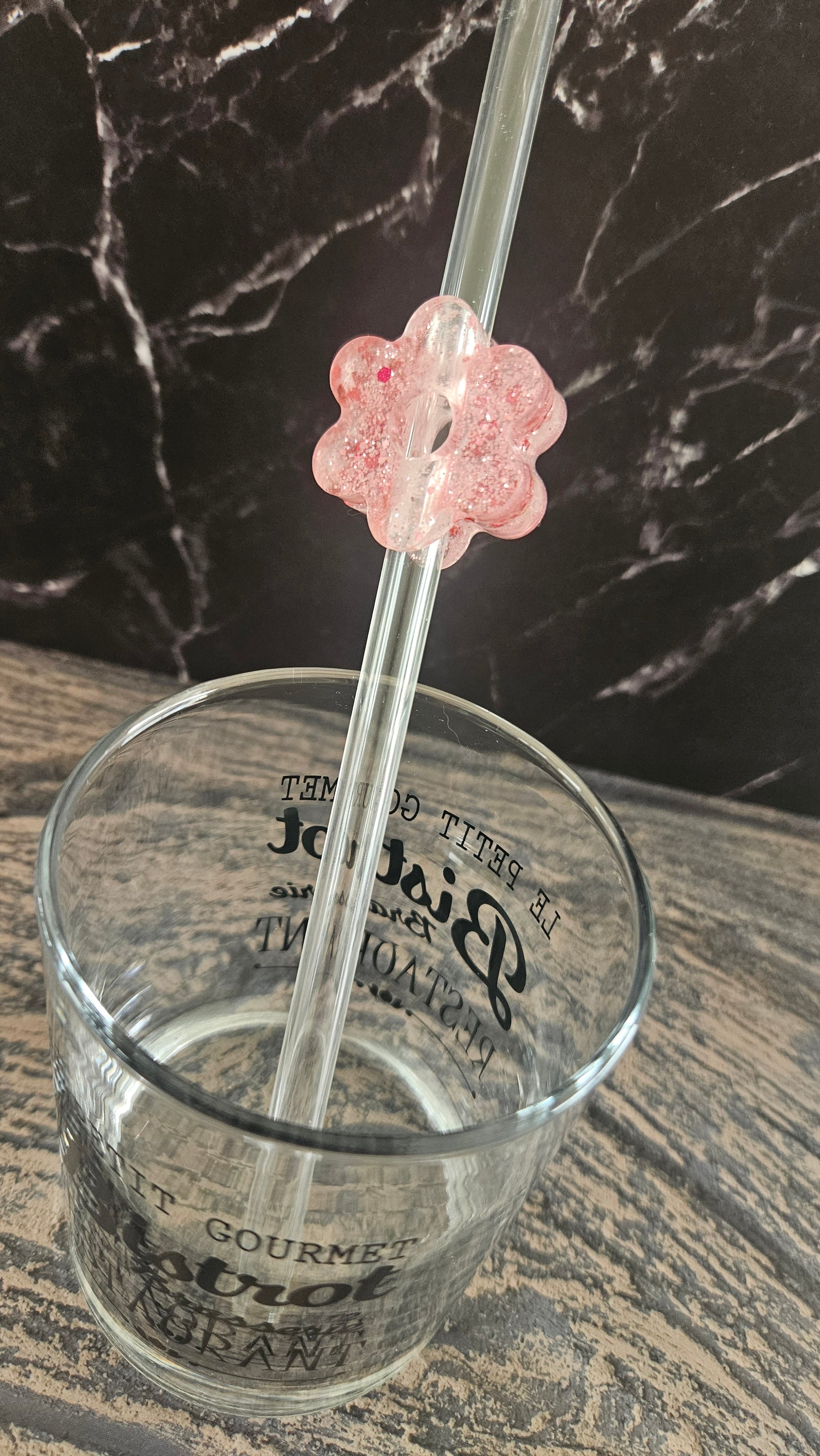 Emporte pièce pour paille en forme de fleur, rose à paillettes.