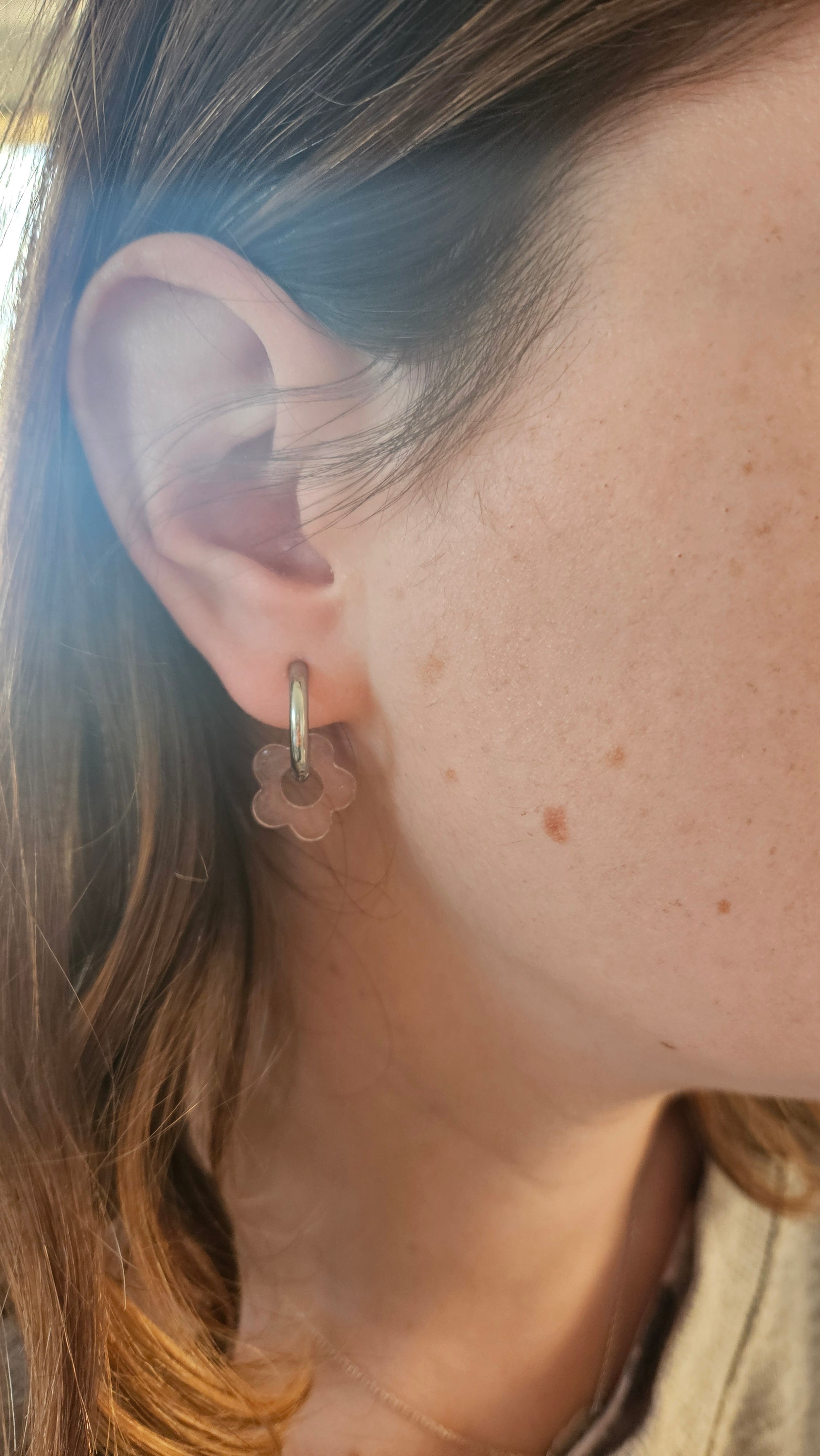 Les créoles ne sont pas vendues avec. Vous pouvez les retrouver sur mon site. Elles sont en acier inoxydable.