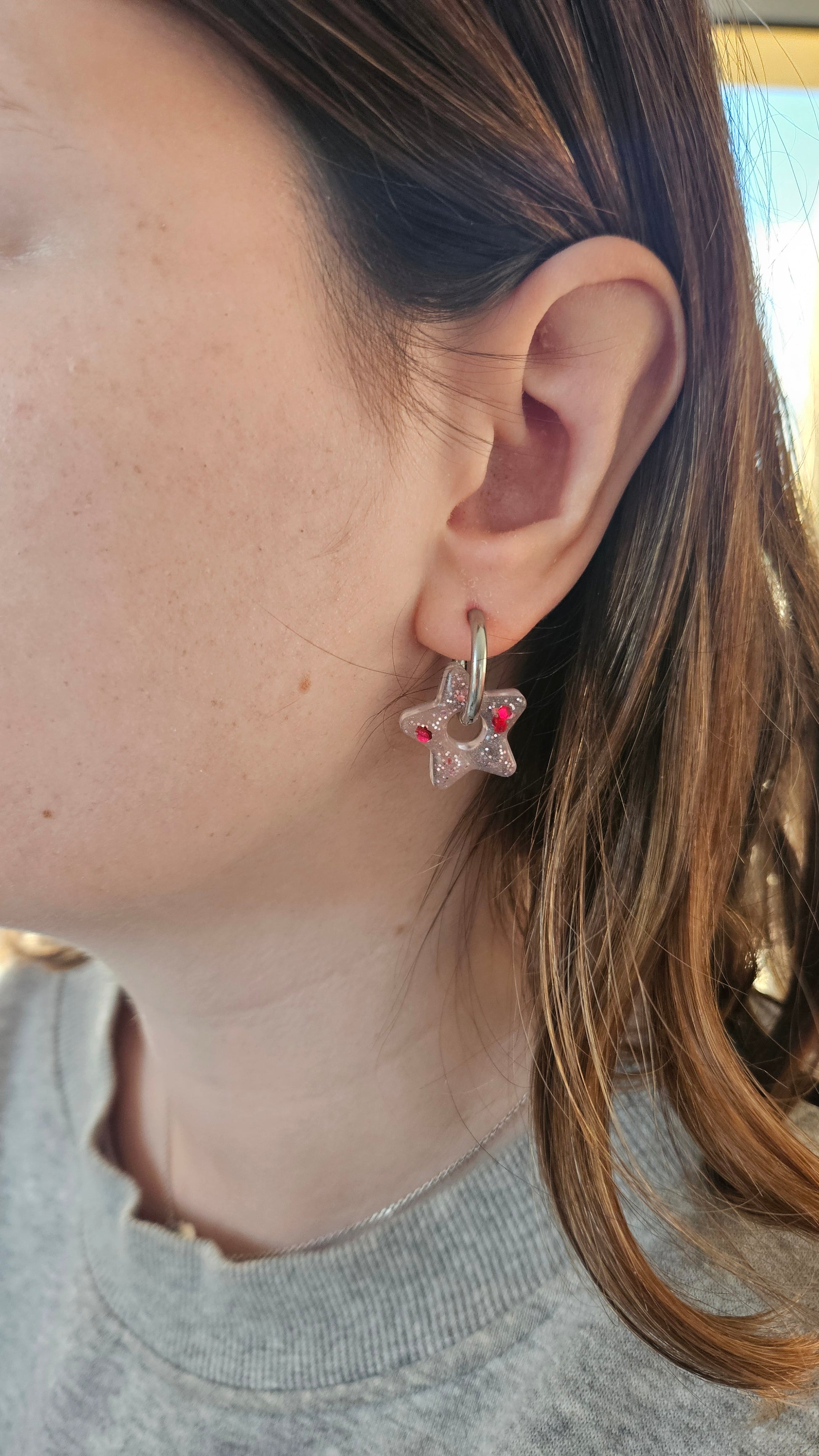 Les créoles ne sont pas vendues avec. Vous pouvez les retrouver sur mon site. Elles sont en acier inoxydable.