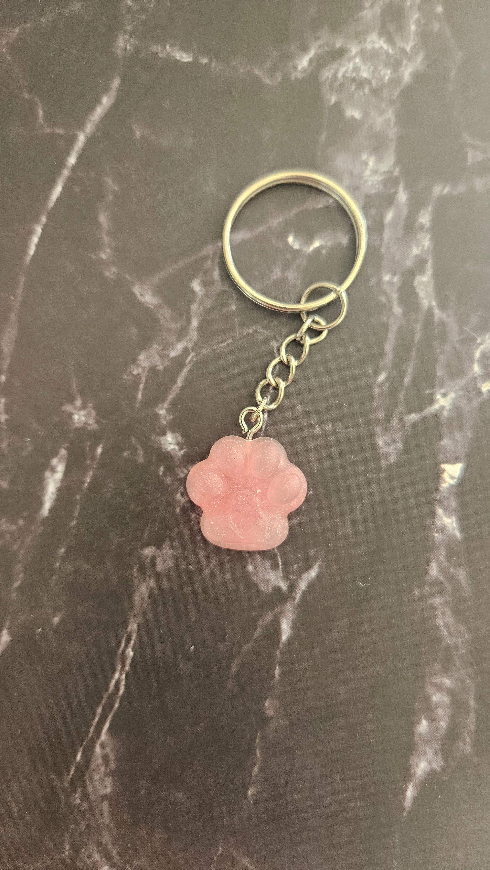 Porte clé patte de couleur rose.