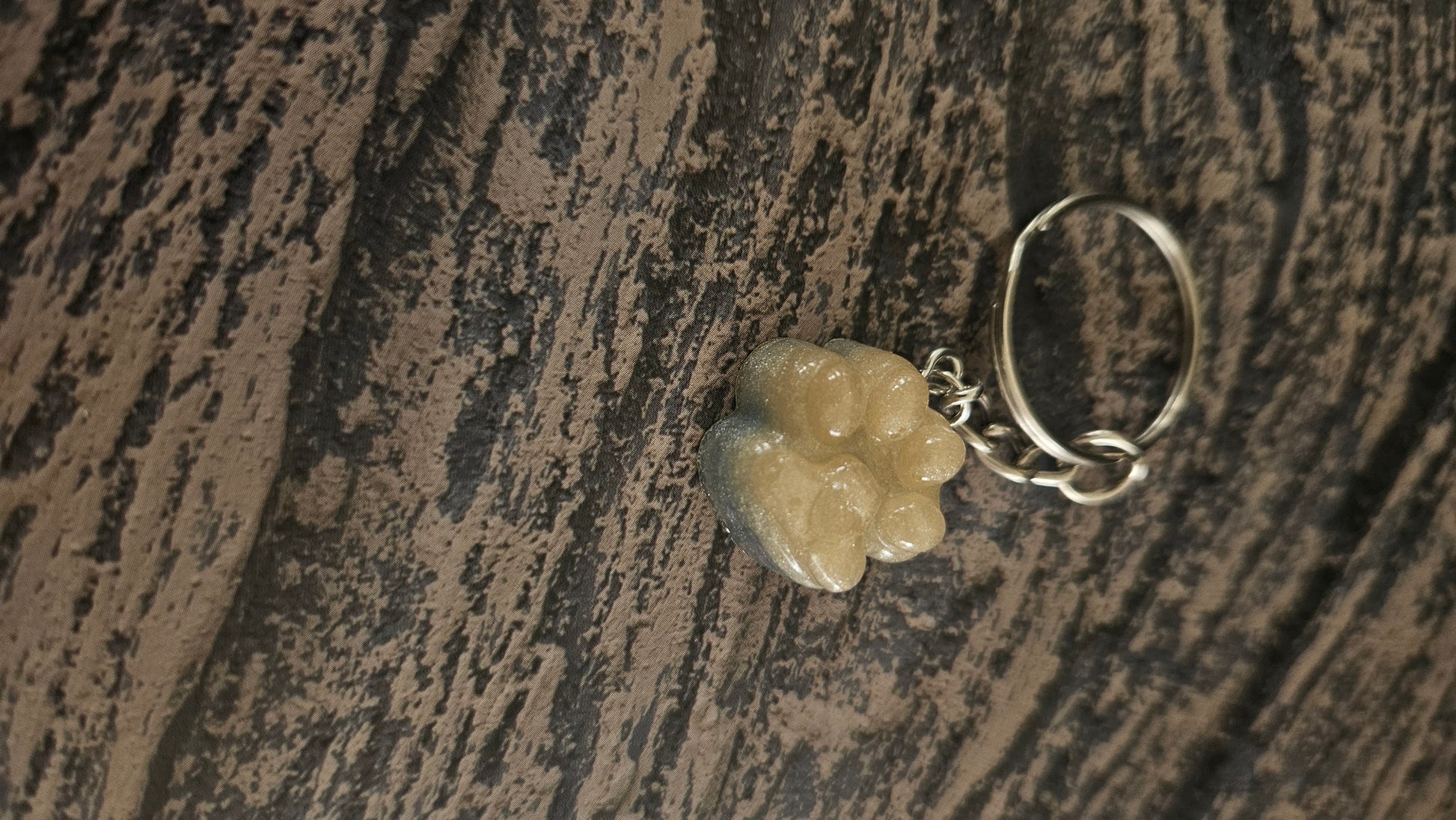 Porte clé patte jaune et bleu.