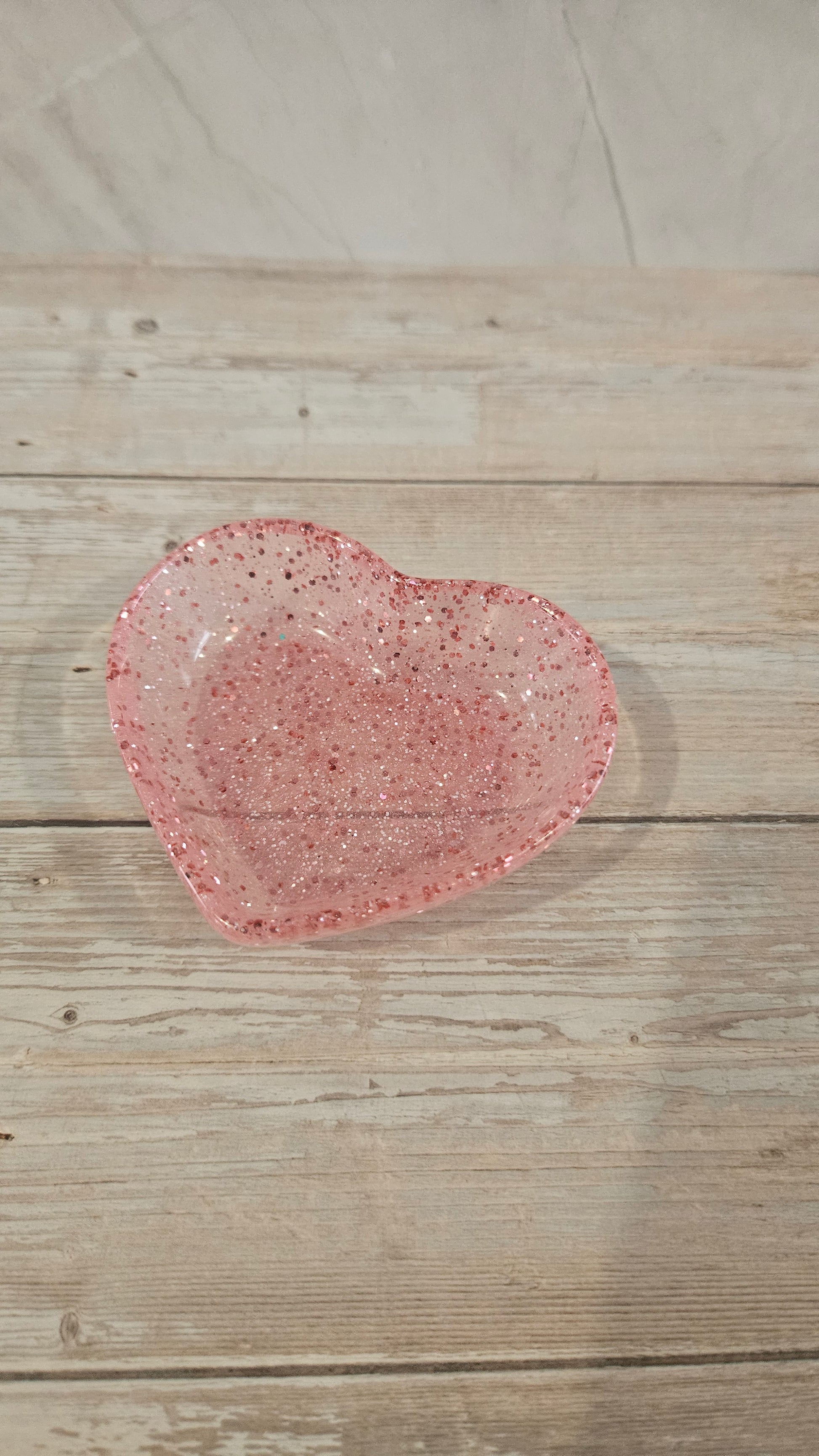 Vide poche cœur rose à paillettes.